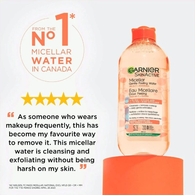 میسلار واتر لایهبردار گارنیر | سمزدا و روشنکننده پوست | حجم ۴۰۰ میل اصلی
