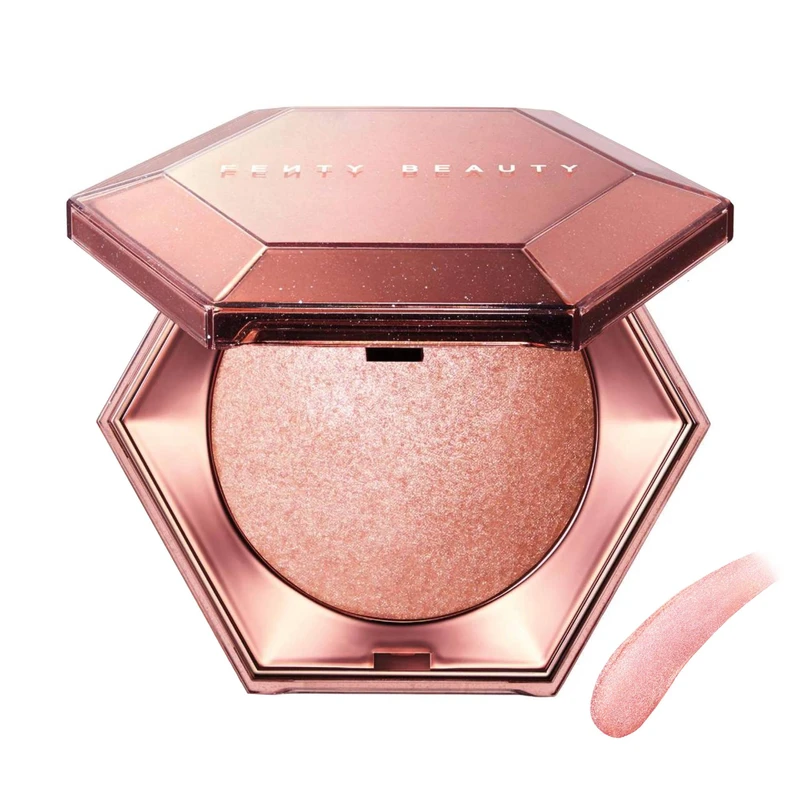 هایلایتر Diamond Bomb از برند فنتی بیوتی، یک درخشش سه بعدی خیره کننده روی پوست بدن و صورتتان ایجاد می کند و شما در هر جمعی مانند یک الماس می درخشید.