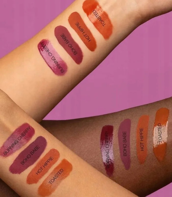 رژ لب هدی بیوتی مدل BOHO BABE با نمای نهایی مات یکی از رنگهای بسیار خوشرنگ است که بسیار پرطرفدار و زیباست.این رژ واترپروف است و ۷۲ ساعت ماندگاری دارد،سرشار از اسید هیالورونیک است و به هیچ عنوان لب را خشک و یا پوسته نمی کند.بخاطر ترکیباتی همچون اسید هیالورونیک و آبرسانی به لب جزئی از محصولات جوان کننده لب به حساب می آيد، پیگمنت فوقالعاده قوی دارد و با یکبار کشیدن رنگ دلخواه ایجاد شده،به اطراف لب پخش نمی شود و حجم خوبی به لب ها می دهد.و نمای نهایی مات بدون رنگ دهی دارد.این رژ لب کاملا وگان و بدون تست حیوانی تهیه شده آیت.
