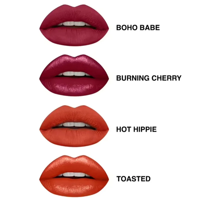 رژ لب هدی بیوتی مدل BOHO BABE با نمای نهایی مات یکی از رنگهای بسیار خوشرنگ است که بسیار پرطرفدار و زیباست.این رژ واترپروف است و ۷۲ ساعت ماندگاری دارد،سرشار از اسید هیالورونیک است و به هیچ عنوان لب را خشک و یا پوسته نمی کند.بخاطر ترکیباتی همچون اسید هیالورونیک و آبرسانی به لب جزئی از محصولات جوان کننده لب به حساب می آيد، پیگمنت فوقالعاده قوی دارد و با یکبار کشیدن رنگ دلخواه ایجاد شده،به اطراف لب پخش نمی شود و حجم خوبی به لب ها می دهد.و نمای نهایی مات بدون رنگ دهی دارد.این رژ لب کاملا وگان و بدون تست حیوانی تهیه شده آیت.