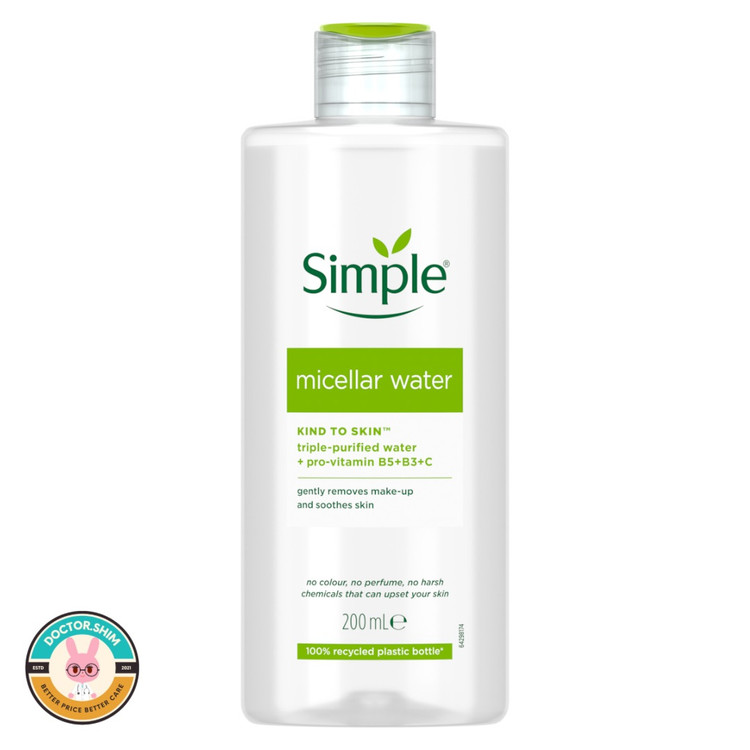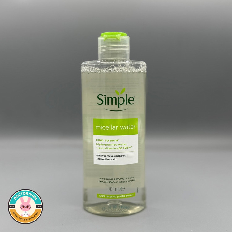 Simple Micellar Water 200ml بهترین انتخاب برای پاکسازی روزانه پوست است — فرمولی سبک، بدون عطر، بدون الکل و سرشار از ویتامینهای مفید که پوست شما را تمیز، نرم و شفاف نگه میدارد.